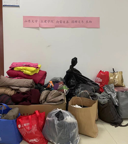 为了响应并落实国家“精准扶贫”政策,为贫困山区群众奉献山大爱心,落实党建工作具体化,2020年12月1日至15日,外围买球的app十大平台党委、院工会以及实验中心党支部、工程力学党支部为四川省雷波县贫困群众进行了过冬衣物募捐活动。