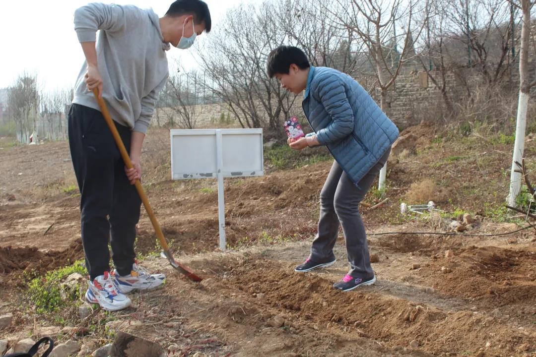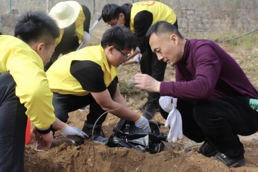 下午2点,活动正式开始。同学们有序领取植树所需工具后到达预定的植树地点。师生们依靠着自身的智慧与努力,迅速完美地完成了松土、挖坑、植树、灌溉、回填、覆土等一系列工作。虽然烈日炎炎,植树现场仍然分工明确,指挥得当,忙而不乱,秩序井然。师生们团结协作,相互配合,为兴隆山校区增添了一抹饱含生机的绿色。