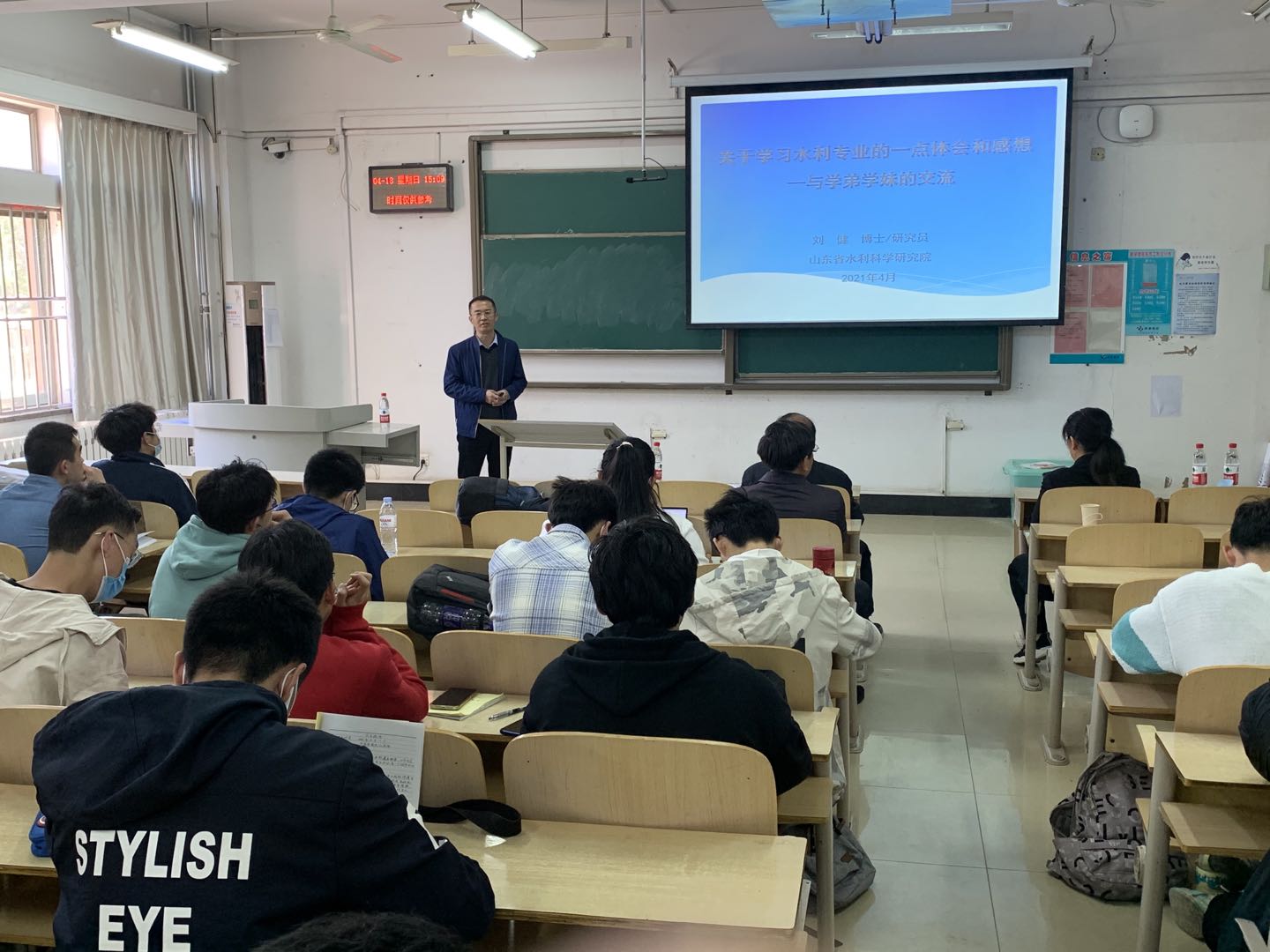 日,外围买球的app十大平台水利工程系邀请山东省水利科学研究院供排水技术研究所副所长刘健研究员以《关于学习水利专业的一点体会和感想—与学弟学妹的交流》为题,在兴隆山校区教学楼