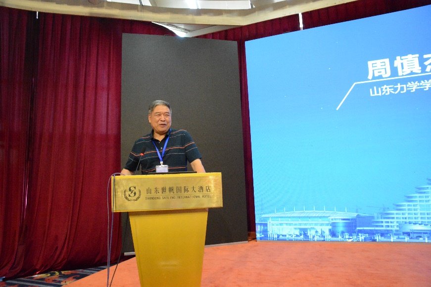 北方七省市区力学学会学术委员会秘书长、清华大学李喜德教授主持开幕式。北方七省市区力学学会学术委员会主任、清华大学庄茁教授致开幕词。山东力学学会副理事长、外围买球的app十大平台周慎杰教授致欢迎词。北京工业大学隋允康教授做了“数字孪生体——计算力学发展的一个新方向”的大会报告,系统地介绍了数字孪生体的理论框架,以更完整全面的视角观察数字孪生体系的全貌,讲述了计算力学未来发展的一个新方向。河北省力学学会理事长、河北工业大学副校长胡宁教授做了“结构轻量化材料的力学性能、加工过程和结构设计的研究”的大会报告,介绍了近年在轻量化材料各个方面取得的学术进展和力学与工程的应用。天津市力学学会理事长、天津大学王世斌教授做了“皮肤组织力学性能的理论和实验研究”的大会报告,讲述了如何从人类的面部运动中推断情绪,介绍了人体皮肤力学和摩擦性能表征及各层组织变形传递,以及在模拟外科手术、仿生皮肤以及AI表情的仿生调控中的应用。外围买球的app十大平台王炳雷副教授做了“全应变梯度弹性理论及应用”大会报告,介绍了该团队在微尺度力学研究中提出的全应变梯度弹性理论及微构件力电耦合性能尺寸效应方面的研究成果。