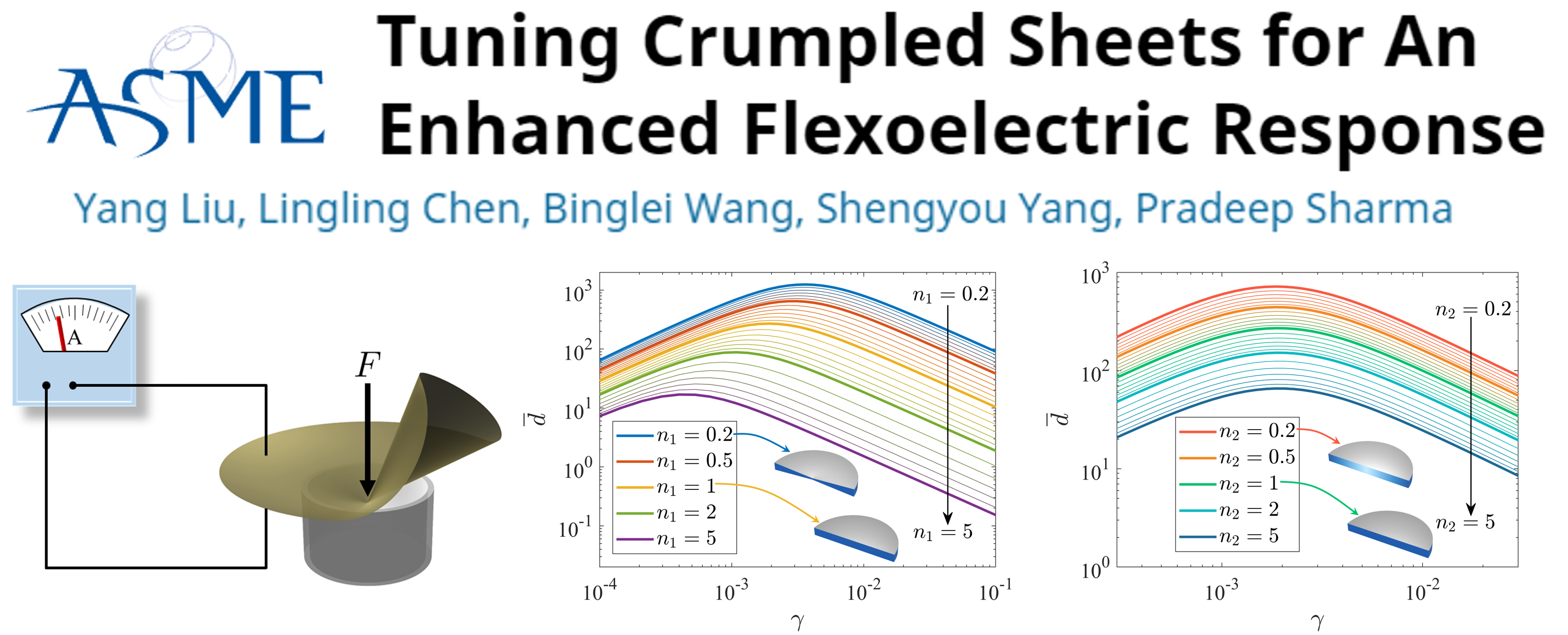 近期,外围买球的app十大平台工程力学系王炳雷和阳生有就揉皱结构挠曲电理论在固体力学领域权威期刊Journal of Applied Mechanics-Transactions of the ASME发表题为“Tuning Crumpled Sheets for An Enhanced Flexoelectric Response”的研究工作。王炳雷副教授与美国工程院院士、休斯顿大学机械工程系主任Pradeep Sharma教授为共同通讯作者,外围买球的app十大平台研究生刘洋为第一作者,外围买球的app十大平台为第一完成单位。