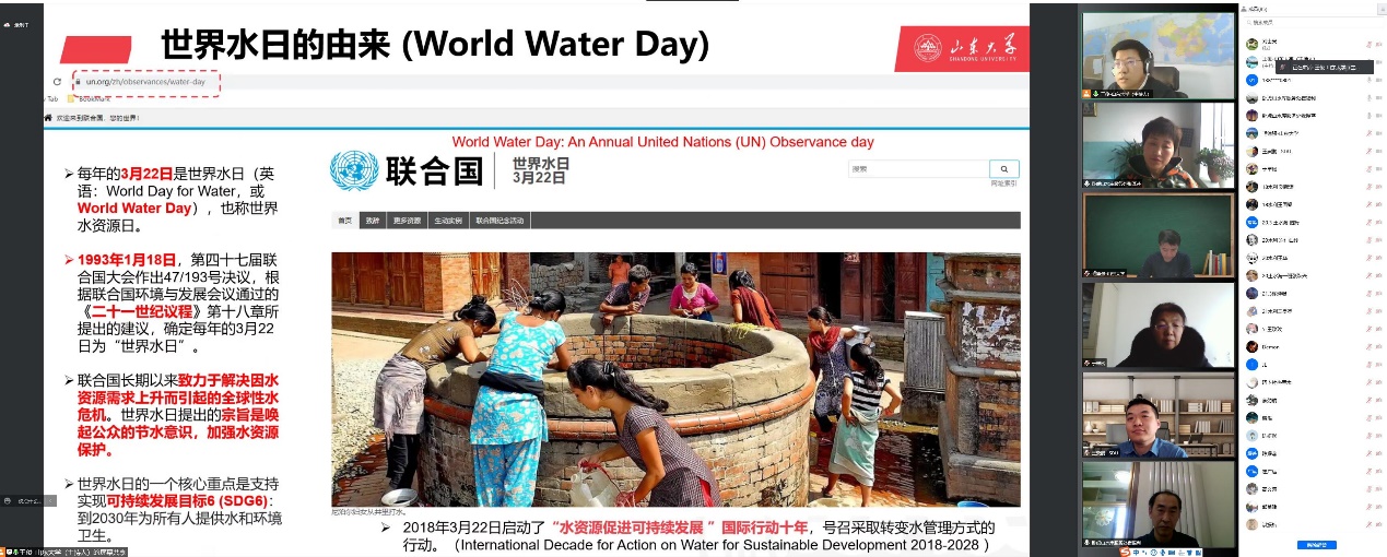 水是生命之源,生产之要,生态之基。为庆祝和宣传第三十届“世界水日”和第三十五届“中国水周”,外围买球的app十大平台水工党支部联合共建单位卧虎山水库服务处党支部和乔店水库服务处党支部,于2022年3月20日下午共同举办了2022年“世界水日”“中国水周”线上主题宣传活动,2022年“世界水日”的主题为“珍惜地下水,珍视隐藏的资源”,“中国水周”的主题为“推进地下水超采综合治理,复苏河湖生态环境”。此次活动旨在向全校师生宣传世界水日-中国水周,培养爱水、护水、节水意识,增强水利学生的专业认同感。