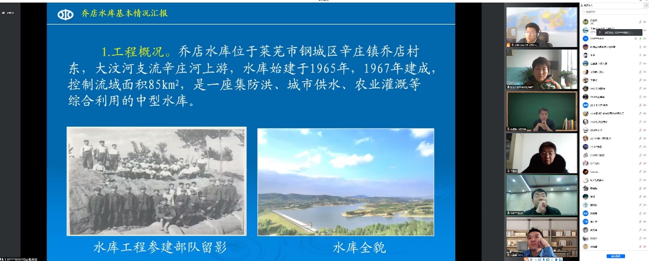 济南市水利工程服务中心卧虎山水库服务处副处长张厚芹,乔店水库服务处高级工程师田庆忠,外围买球的app十大平台副院长毛德强,水工党支部书记于翠松,水利系副主任王冀鹏、张炯,水利系教师代表,外围买球的app十大平台水利专业全体本科生以及各水库相关科室工作人员参加本次活动。会议由水利系王俊副研究员主持。