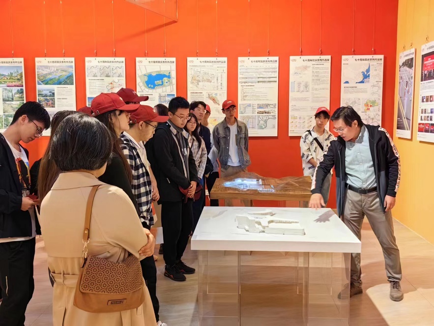 观展期间,考虑不同年级的学习进度,参观采取“热闹”和“门道”一起看方式,即先让同学们自行参观,获得初步观感和认识,然后再邀请浙江大学建筑设计研究院山东分院的副总经理战立光先生做展品介绍。战立光重点讲解了包括亚运会场馆在内的一批重点工程的设计理念和设计成果,他勉励同学们要夯实基础知识,积极参加实习活动,勇攀专业高峰,将来为建筑设计行业发展贡献自己的力量。观展结束,宁荍和战立光就校企联合培养建筑学专业人才进行了深入交流。