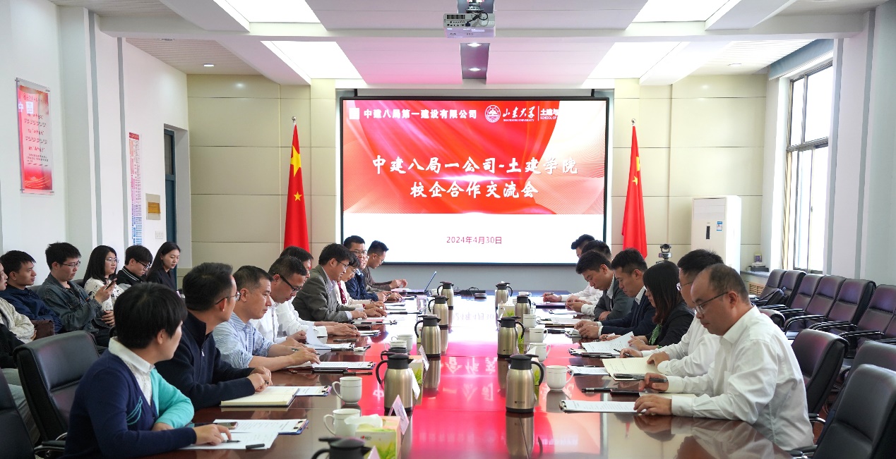 4月30日,外围买球的app十大平台与中建八局第一建设有限公司在外围买球的app十大平台千佛山校区水利楼211开展校企合作交流会。土建学院院长张庆松,党委书记刘斌;一公司党委书记、董事长齐朋,人力资源总监马姗姗,济南公司党委书记谢新坡;土建学院班子成员、师生代表及中建八局一公司相关部门代表参会。