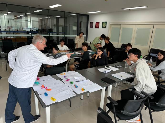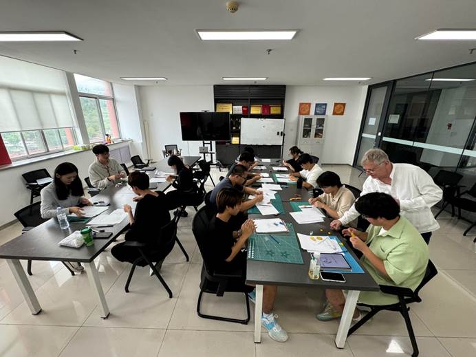 本次暑期学校四天的课程均为讲座结合思维训练及设计指导的方式展开。7月8日,Walter Nägeli教授在兴隆山校区实验楼633正式开始暑期学校授课。Nägeli教授就该课程主题:“跨越边界”及创造力与建筑设计的关系进行了阐述,并带来了题为“Crossing Borders”的开题讲座。随后他指导同学们进行了“Blind Drawing(盲画)”及“My Perfect Chair(我的理想之椅)”两项思维训练,讨论了人对事物感知的直接输出以及头脑中设计概念的物化过程。