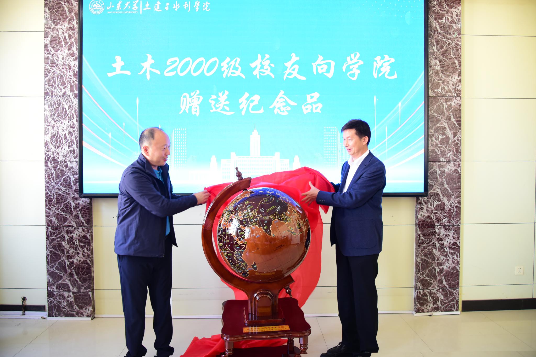 任课老师和返校校友结合旧时趣事、个人成长发展,逐一发言交流,共同追忆芳华岁月。师生们在声声欢笑中重温美好,畅叙师生情谊。随后,土木系2000级校友向学院捐赠纪念品。