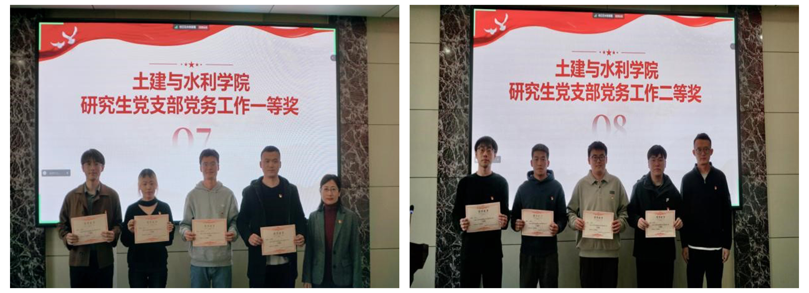 辛帅、王超分别为荣获外围买球的app十大平台研究生党务工作一等奖、二等奖的党支部颁奖。