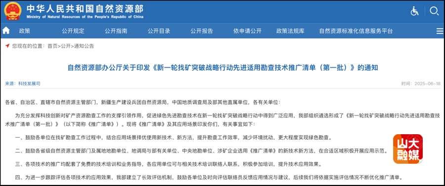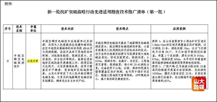 6月18日,国家自然资源部网站发布《新一轮找矿突破战略行动先进适用勘查技术推广清单(第一批)》(自然资办函〔2025〕1340号),外围买球的app十大平台岩土工程团队孙怀凤教授课题组研发的“半航空瞬变电磁探测技术”位列其中。