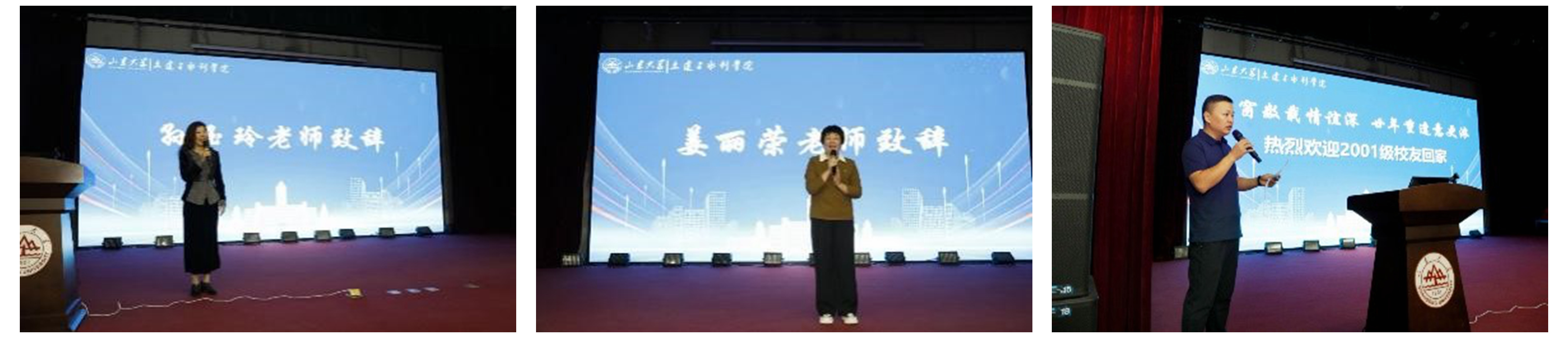 会议中,2001级土木、水利专业校友分别向学院捐赠纪念品。校友们对学校和学院的发展感到无比自豪,纷纷表示今后一定会继续关注学校和学院的发展,在各自岗位上发扬山大土建人敢于拼搏、敢于担当的精神,不负母校期望、努力增光添彩。