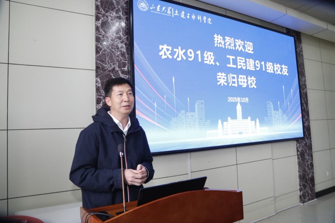 秦承涛深情回顾了当年与学生们共同度过的难忘时光,对校友们取得的成就感到由衷自豪,并勉励大家继续发扬山大土建人的拼搏精神,在新时代再创佳绩。