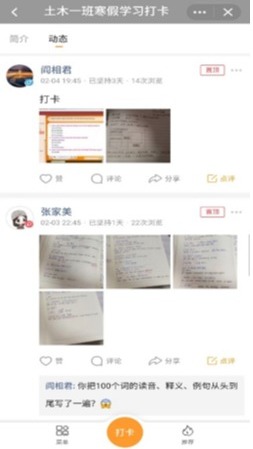 土建学院各团支部积极响应国家倡议,呼吁同学们勤洗手,勤锻炼,尽量不出门,出门戴口罩,在外不影响他人。同时为了在特殊时期里不浪费时间虚度光阴,各团支部开展形式多样的主题团日活动,建立寒假系列打卡小组,打卡内容涵盖专业学习、拓展阅读、体育锻炼、兴趣爱好、生活分享等,互相学习,互相监督。