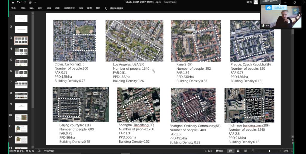 7月6日,Walter Nägeli教授通过ZOOM网络会议正式开始了暑期学校授课。作为本课程的开题,Nägeli教授就密度的概念、世界城市发展历程中的密度问题及理论发展进行了相关讲授,随后,建筑学系的赵康老师进行了“Design and Research”(设计与研究)为题的讲座,对研究的概念、相关方法步骤及与设计的关系进行了讲解。7月7日,Nägeli教授做了以“The Issue of Density”(密度问题)为题的主旨演讲,并与赵康老师一同进行了项目任务书的详细解读,为同学们下一步的研究学习指明了方向。
