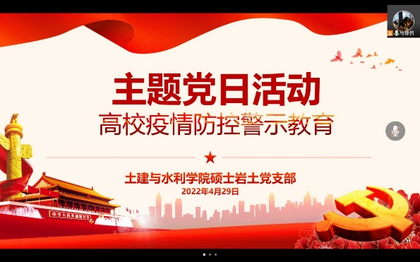 疫情就是命令,防控就是责任。全体党支部均学习了《高校疫情防控大学生警示教育案例》,并开展警示教育。其中,硕士研究生岩土党支部、结构研究生第一党支部结合千佛山校区封校期间的防疫实际,深入解读学习了各案例带来的警示;博士研究生党支部、博士研究生第二党支部党员表示,作为博士生党员,更应树立防疫人人有责的意识,织密生命安全防护网,在完成好各项科研工作的同时不折不扣地做好疫情防控工作。
