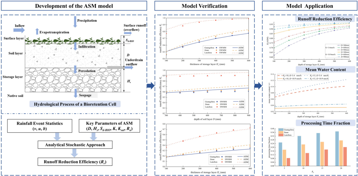 图1 生物滞蓄系统随机解析水文模型构建与应用示意图 (J. Hydrol. 2024)