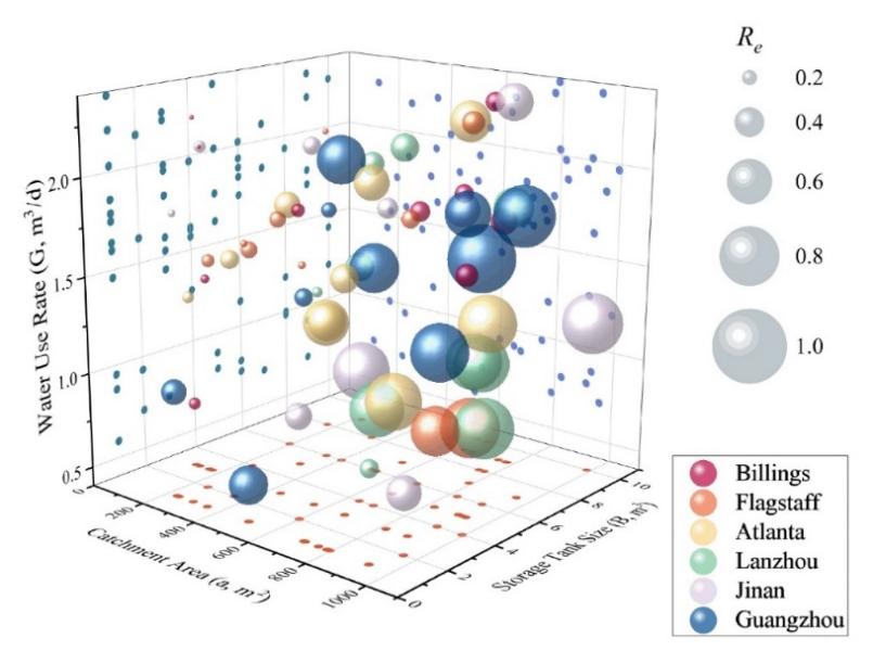 图2 雨水收集系统供水保证率与用水量、集雨区等多变量关系 (J. Clean. Prod., 2024)