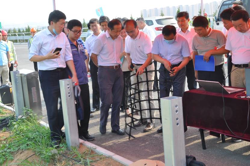 首先,与会人员现场调研了荣获国家科技进步奖的科研成果在济南绕城高速大东环项目中的应用情况,课题组组长崔新壮教授在项目工程现场为大家讲解了课题组应用智能土工合成材料、排扣式嵌固土工格栅、地基强夯参数确定技术、路基压实质量控制技术等先进技术解决大东环建设过程中的粉土路基难压实,边坡易冲蚀,以及采空区路基沉降预警等难题。随后,与会人员来到项目部会议室,听取了黄河中下游地区粉土路基建设难题的成因及课题组相关科研成果。司家军副厅长向外围买球的app十大平台等单位和崔新壮教授获得国家科技进步奖二等奖表示热烈祝贺,以外围买球的app十大平台为核心的黄河中下游地区粉土路基科研团队历经15年的刻苦攻关创建了集理论、方法、技术于一体的粉土路基建造支撑技术体系,攻克了长期困扰我省交通基础设施建设的技术难题。他指出,习近平总书记提出了黄河流域高质量发展战略,而且当前山东交通运输在综合交通体制机制改革、交通运输高质量发展、交通强国试点建设等方面也不断发力,交通运输厅支持国家奖科研团队抓住机遇,利用科研优势在新技术、新材料等方面为我省交通基础设施建设方面增砖添瓦,同时也鼓励课题组在工程建设标准化、农村公路以及固废利用等方面开展深入研究。司厅长指示,下一步各方将围绕相关技术进一步加强应用对接,建立科研团队与交通运输重点企业的合作交流机制,由交通运输厅牵头,各单位共建科研平台,构建政产学研金服用一体化的发展体系,为交通强省建设做出贡献。