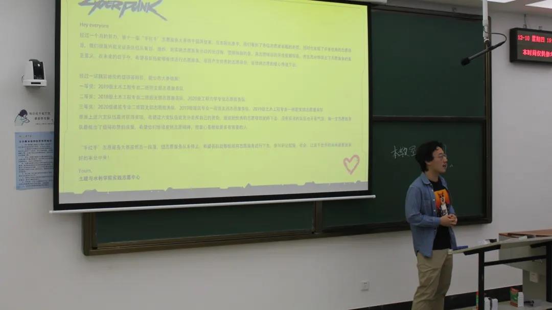 12月10日晚,外围买球的app十大平台于兴隆山校区教学群楼举行第十一届“手拉手”志愿服务大赛颁奖仪式。颁奖仪式由土建学院志愿服务部部长马湛涛主持,获奖班级团支书参与。