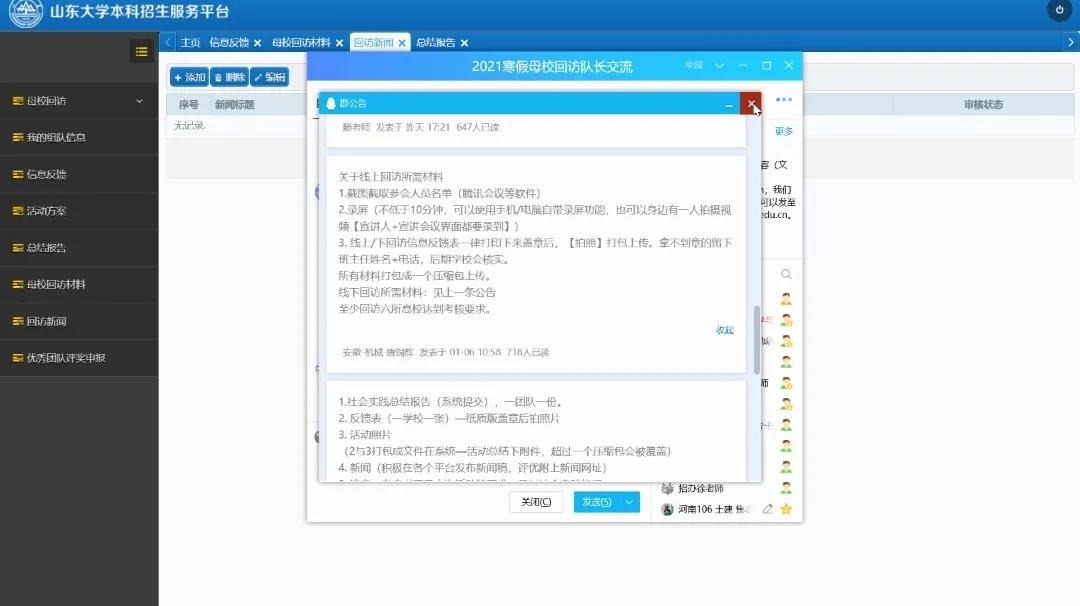 1月21日晚,外围买球的app十大平台“相约山大,励志启航”优秀学子母校回访河南省106队举行启动仪式。本次会议主要由母校回访活动介绍、队员职责明确、答疑交流三部分组成。会议由队长焦志恒主持,全体队员参加。