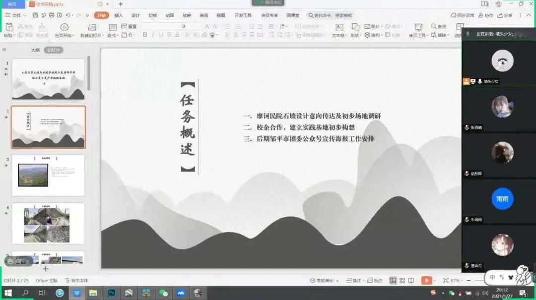 2021年1月27日晚8点至9点,外围买球的app十大平台赴山东邹平市助力复工复产实践服务团开展了第一次线上开题会议,会议内容为讨论当下疫情防控环境下社会实践的工作安排。