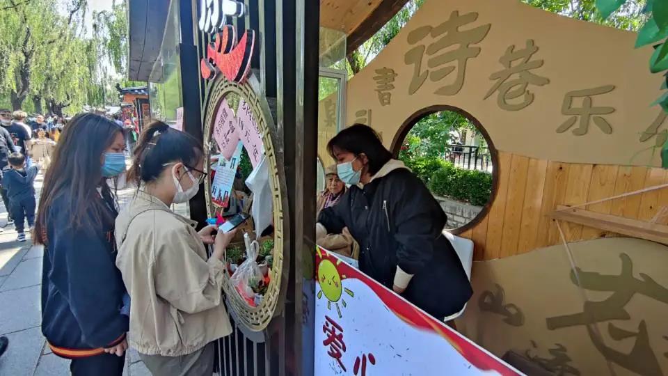 5月1日,外围买球的app十大平台泉语水利志愿服务队协同济南市慧爱残疾人服务中心于曲水亭开展为期3天的助残义卖。售卖所得用于大龄心智障碍者就业技能培训。