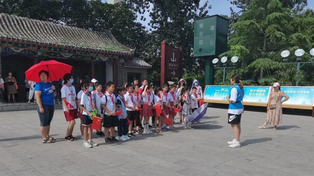 7月18日上午9点,“古建筑梦”实践志愿团同济南市博物馆工作人员一同举办“文博小使者”暑期红色研学活动。活动从雄壮的解放阁开始,一路沿着红色人物纪念地前进,用角色扮演的形式,加深孩子们对党、革命和共产主义的理解,激发他们对于党史的热忱。