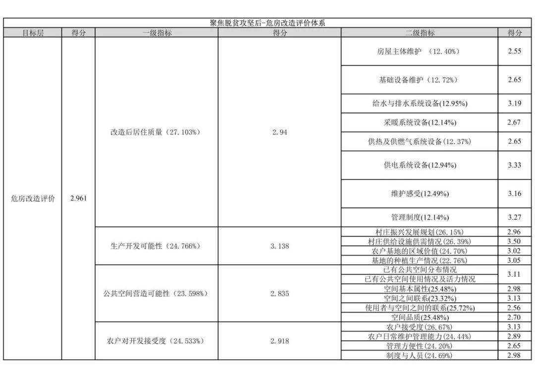 本次调研的成果为后期信息平台评价体系的运算机制提供了数据支持,结合团队成员代入后期平台使用者的身份对所调研的村庄和改造户进行观察,对后期评判要素进行选择。