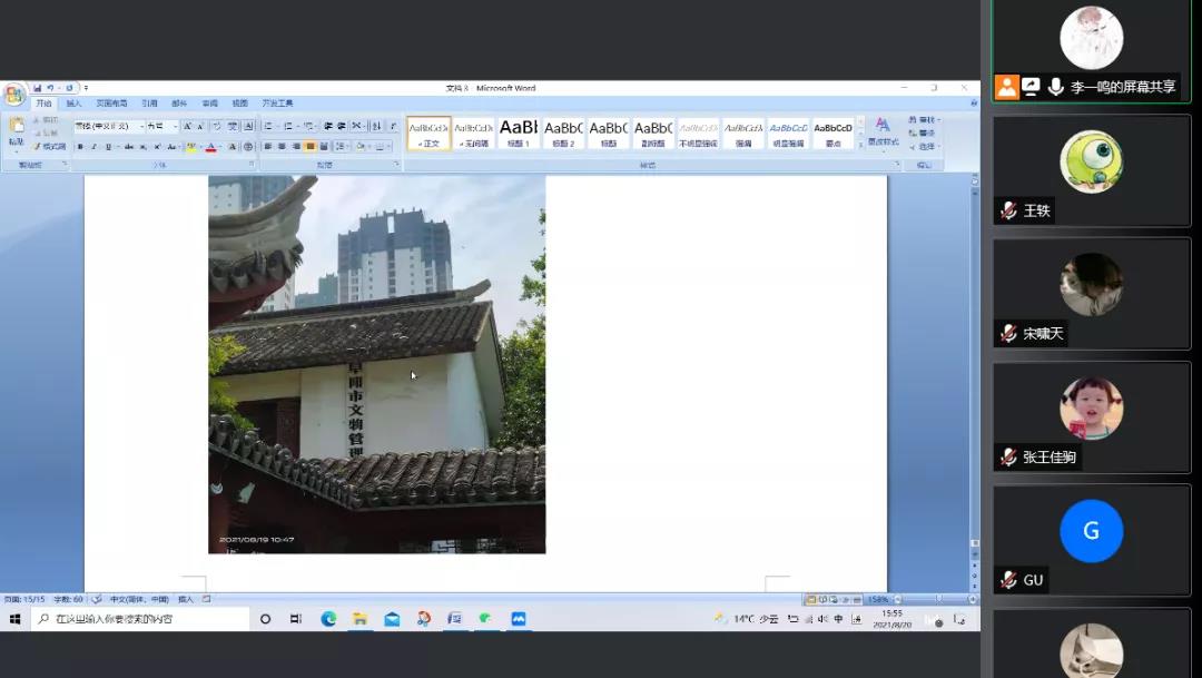 8月20日,土建学院“寻筑”关于古建筑在现代的融入与利用调研团开展线上会议汇报项目最新进度,李一鸣主持本次会议,张王佳驹、宋啸天、王轶、张钟华及指导老师谷健辉参与本次会议。
