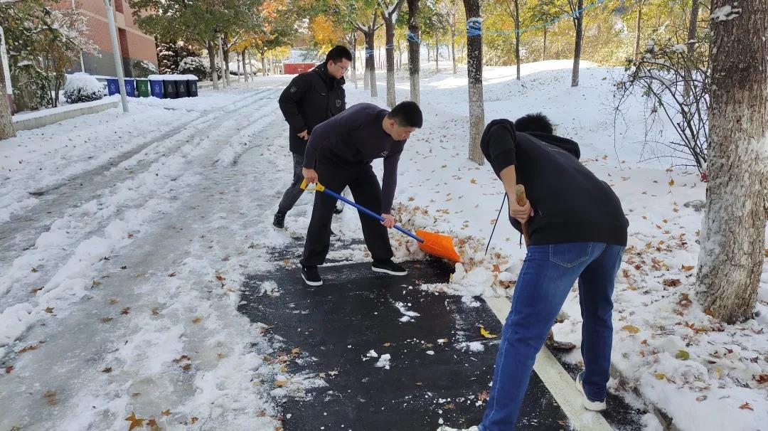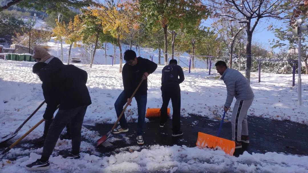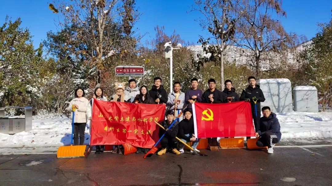 11月8日,为保障校内师生正常活动,发挥党员先锋模范带头作用,土建与水利本科生第一党支部积极响应学校号召,组织开展积雪清扫活动。