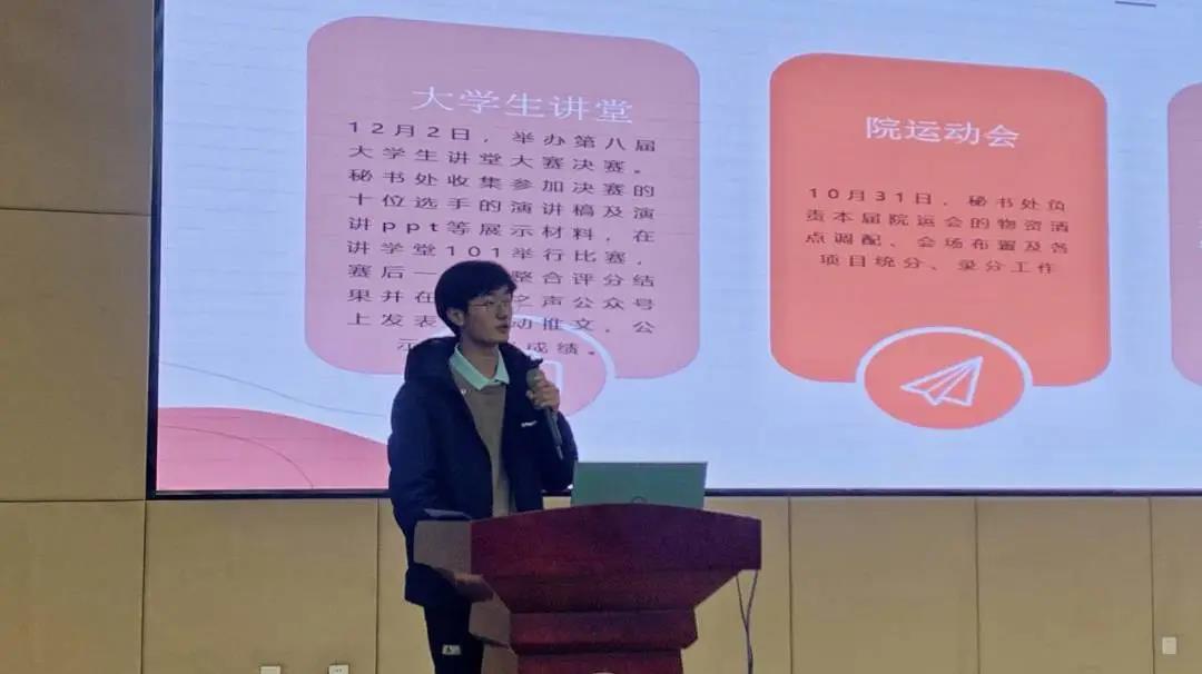 汇报环节,各部门代表依次回顾了本学期工作经历,总结了工作不足,规划了未来工作安排。组织部和社会实践部以短视频的方式,生动展现了半年来的工作风采;传媒部和网编部借助数据展示了学院媒体的运营宣传成果;志愿服务部用一个个精彩的志愿服务活动诠释了“用最初的心、做永久的事”,展现了作为外围买球的app十大平台“十佳志愿服务组织”的服务风采……一张张照片、一个个数据、一段段视频,凝聚着大家的热情与心血,展现了土建学院学生会的良好风貌。