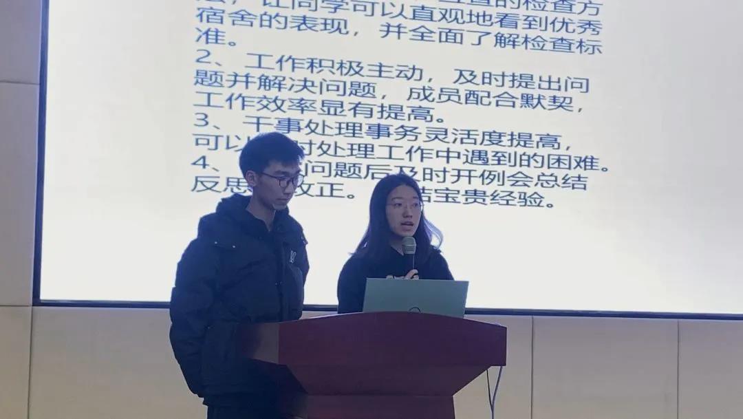 总结环节,何玥对学生会半年工作进行了总结。何玥首先感谢大家半年来的辛苦付出,对大家取得的成绩表示祝贺。她结合未来工作安排,要求大家在现有工作基础上要认真总结反思,要深刻明白“做学生工作是为了什么”,要强化责任担当,从心出发,全心全意做好学生服务工作。她鼓励大家充分利用寒假时间,广泛学习、积极思索,加强交流沟通,树立学生服务工作品牌。