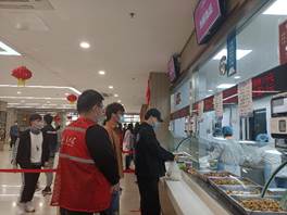 食堂志愿服务工作主要需要志愿者们分布在舜园和西苑食堂的门口、大厅,提醒同学们按照防疫要求戴好口罩、保持间距、快速打包,维护好食堂的用餐秩序,从而避免高峰期人群拥堵。在整个志愿服务过程中,我院志愿者们身穿红马甲,服从安排积极调度,坚守好自己的岗位。5月13日,由于中心校区同学返校后隔离一周供餐压力较大,我院志愿者与餐厅工作人员一起参加了中心校区饮食保障工作。学院志愿者按时到达集合地点,自觉佩戴口罩,按照要求穿戴手套、工作服,在食堂工作人员的指导下有序展开饭菜搬运任务。通过相互传递交接的方式将一份一份暖心盒饭送到大巴车上,共计搬运了3000份餐食。