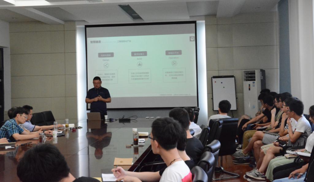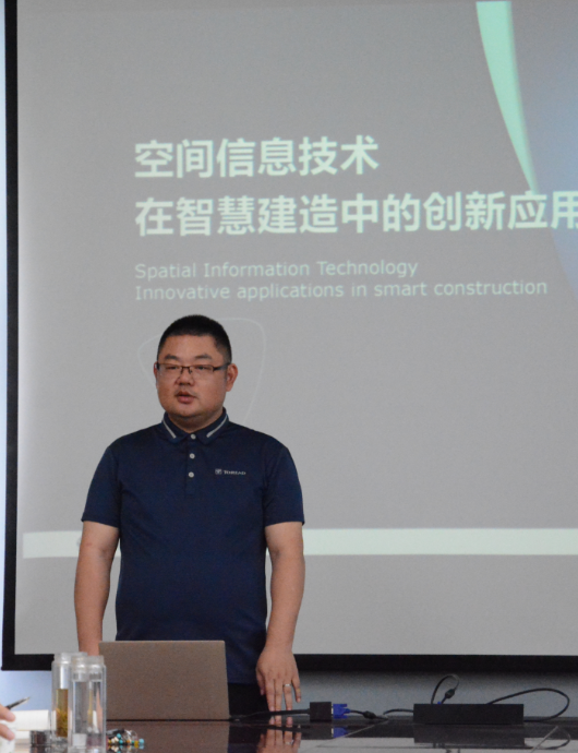 讲坛开始,刘磊由国家关于未来航空发展的规划、未来几年国家高速公路建设目标以及“一带一路”巨大的基建任务出发,引出传统的建造方式面对如此巨大的建设任务所表现出来的高耗能、效率低下、劳动密集等弊端。他提到为解决上述存在的问题,新的建造模型——智慧建造将推动全球制造业发展步入新阶段。在“互联网+”的时代背景下,利用空间信息技术将整个建造过程数字化、信息化和物联网化,在智慧管控体系下全生命周期进行管控,在时空领域建设的过程同时数字化建造,从而像工业制造业一样精细化和标准化,实现人与自然的和谐共生。随后刘磊博士以“智能压实”典型案例中数字化导航系统发展趋势——传统GPS定位与后台终端监控到改进型的引入了施工导航,最后进一步发展为无人驾驶的方式为例,向在座的师生展示智能建造过程。他认为与传统建造模式相比,智能建造在加快施工进度的同时还能保证施工质量,具有高效率、高质量、低能耗的显著优点。最后他讲了空间信息技术在智能建造中的几个创新应用,包括数字大坝——空间信息技术在建筑领域的典型应用、建立公路的三维数字化模型(全息三维移动测量系统)、强夯系统和千年秀林系统(雄安新区)。