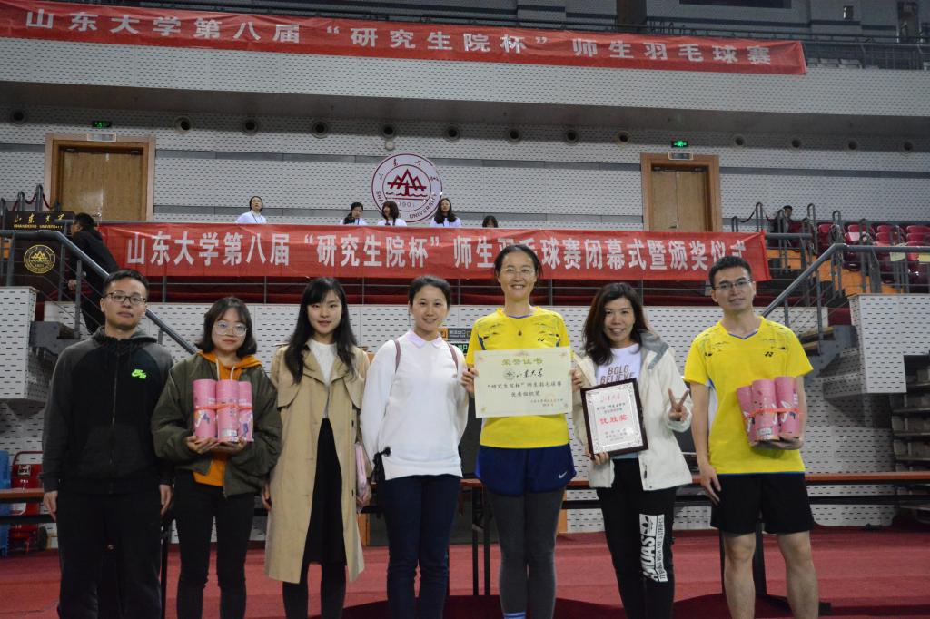 2018年4月13日、15日,外围买球的app十大平台第八届“研究生院”杯师生羽毛球赛在中心校区体育馆顺利举行。外围买球的app十大平台代表队由宋修广老师、孙仁娟老师、于敏老师、陈烨老师和杨智超、肖邵文、胡玉庆、佘蕊同学组成,孙玉玲副书记和姜海鹰老师到比赛现场为选手们加油助阵。经过充足的赛前准备与两天的奋勇拼搏,我院取得了优秀组织奖和优胜奖的佳绩。