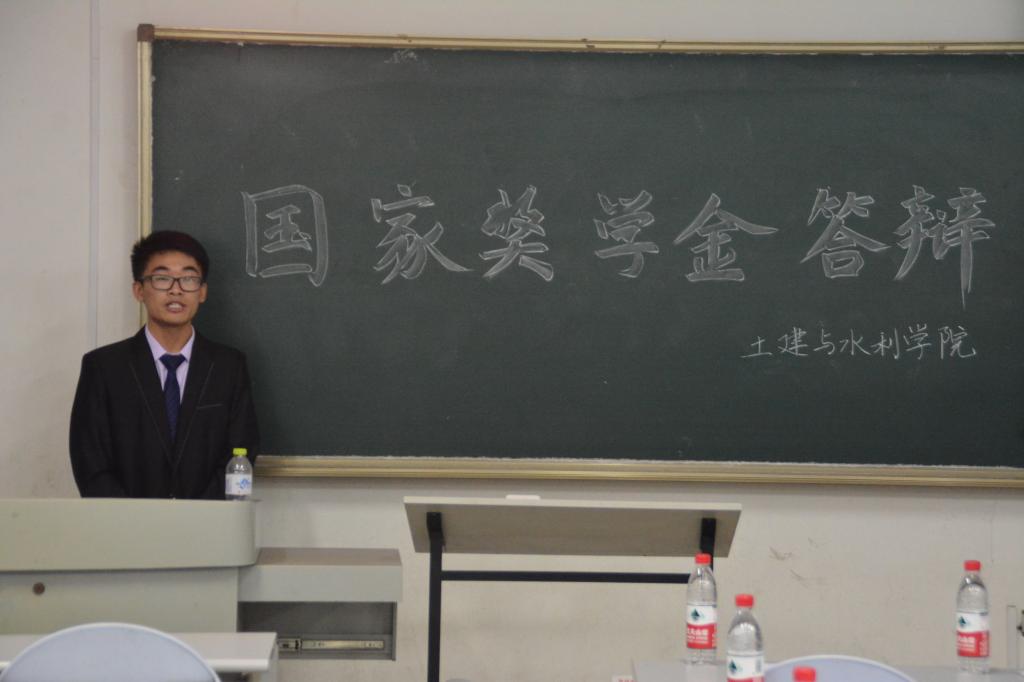 晚上6点30分,答辩会正式开始。共有来自四个年级的24位选手参加了国家奖学金答辩会,答辩选手主要从个人介绍、思想建设、学习成绩、活动实践、学生工作等方面进行了答辩。在思想建设方面,选手们都努力提高思想政治觉悟,积极向党组织靠拢,用共产党员的标准严格要求自己;在学习方面,他们均名列前茅,都自信地展示了自己每学年的优异成绩,并表示自己会保持良好的学习态度,让优秀成为习惯;在实践活动方面,选手们介绍了自己参加过的院校级、国家级比赛及社会实践活动,并向评委老师展示了一系列获奖证书;在学生工作方面,答辩选手分别介绍了自己担任的职务,并展示了个人和部门获得的奖项,选手表示,学生工作既锻炼了自己的能力,又是为学院贡献力量,意义重大。最后,答辩选手对个人发言作了总结,同学、老师及学院表达了诚挚的感谢,展现出土建学院学子自信乐观、常怀感恩的美好品质。答辩中,许多选手向大家展示了自己的座右铭,15级土木一班茹阳超以“靡不有初,鲜克有终”一语讲出了善始善终的重要性,与在场同学共勉;16级魏玮则讲“愿你有做自己的自由和敢做自己的胆量”,鼓励同学们追求更好的自己,给了在场同学许多启示。最后,梁莹做了总结发言,并说明了结果公示时间和申请表的填写方法,答辩会到此结束。