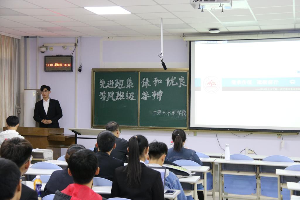 11月1日,外围买球的app十大平台在兴隆山校区教学群楼举办先进班集体和优良学风班级答辩会。土建学院团委书记张瑜、学工办主任梁莹、2018级辅导员杨浩到场担任评委。