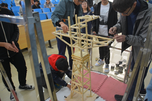 4月14日,外围买球的app十大平台于兴隆山校区讲学堂举办第十三届全国大学生结构设计竞赛校内筛选赛。土建学院副院长王培军,土木工程系教授段抗担任指导嘉宾。