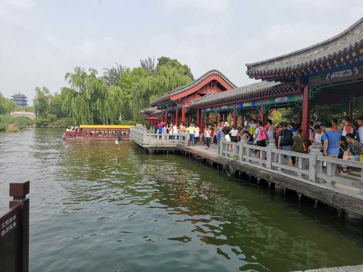 大明湖景观周边主要是亭台走廊等园林建筑。中国古典特色建筑为这一环境带来了深厚的文化气息。经过团队的调研分析,围绕明湖的走廊已经成为了重要休闲生活场所。在场地功能关系上,走廊也为观赏景观提供了充足的视角。随后,团队乘船开展了近距离的景观调研活动。最后,“江·泉·湖”团队圆满完成本次调研实践活动。