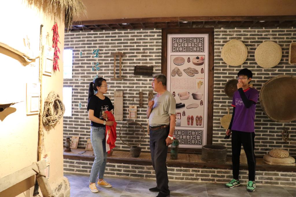 参观过程中,负责人分别对非物质文化区、生活展示区、民俗展示区和院落展示区的相应展品做了详细介绍,并结合沙盘模型讲述了“康熙嫁女”这一标志性事件,从而展示了小庙子村的历史由来。在介绍传统农业用具时,工作人员一一进行了操作演示,带给成员们新奇有趣的体验,也使同学们体会到劳动人民的艰苦奋斗精神。最后,团队成员们与工作人员合影留念,小庙村调研活动圆满结束。
