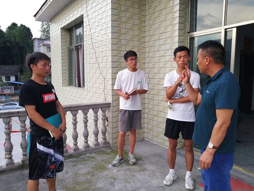 座谈伊始,三位村领导对调研团的到来表示热烈欢迎,对调研团的生活方面表示深切关怀,勉励调研团积极锻炼自己,克服生活的艰辛与繁重的工作任务,同时表示对调研团全力支持并给予厚望。“这么多的大学生一起来到我们甘佃村,这是前所未有的!希望能通过你们的视角,帮助我们更深入地了解甘佃村,更清晰地认识到我们在扶贫攻坚方面存在的问题。同时,我们将尽全力帮助你们完成调研活动,吸纳你们的宝贵意见。”村支书胡宗普如是说。队长吴紫涵感谢当地政府与人民对活动的大力支持,回顾了团队从3月到7月一路走来的经历,表明了团队将不畏艰辛,直面挑战,竭力完成此次任务信心和决心。