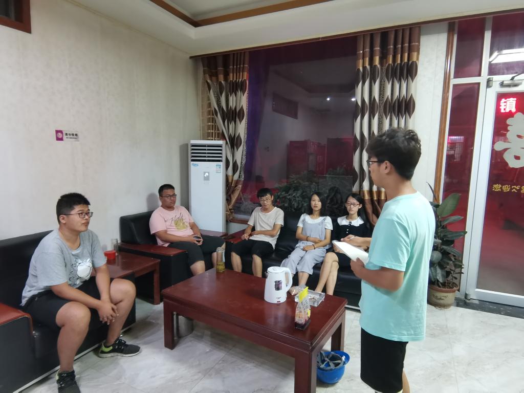 晚上七点,会议正式开始。队长黄一雄首先对本次社会实践的行程做出了简略概括:8月15日,团队成员齐聚李村镇,开展前期会议;16日至18日,团队分别前往镇政府、郝寨新村和郝寨旧村进行调研;19日,团队与风车项目的政府负责人贺主任开展访谈并近距离接触了风车;20日,团队前往香草园、玫瑰园和黄河滩区的游乐园项目“黄河部落”亲身体验并分析经营状况;21日和22日,团队分别对黄河引水灌溉工程和黄河浮桥进行了实地调研;23日,成员们成功联系到摊位,亲身体验了当下农村摆摊的生存状况。团队成员李威兵总结了李村镇在这些工程中的成功之处:郝寨搬迁避免了旧村被黄河涨水淹没的危险,并且令村民的居住、购物、交通和孩子上学等有了巨大的改善;风车项目充分利用了河边平原的风力,实现了清洁能源利用;黄河部落为当地居民的休闲娱乐和一些集团搞团建提供了选择;集市摊位规划也保证了主干道的交通通畅;村镇的道路大部分也实现了硬化等。而王华斌则总结了团队调研中发现的诸多问题:郝寨村迁移项目存在着例如分房不均、旧村迟迟未能还耕等问题;香草园和玫瑰园濒临破产;黄河部落因批准用地等问题迟迟未能建设完成;传统的集市摆摊的生存状况也是不容乐观;乡村通有的老人孩子留守问题也是显露无疑。