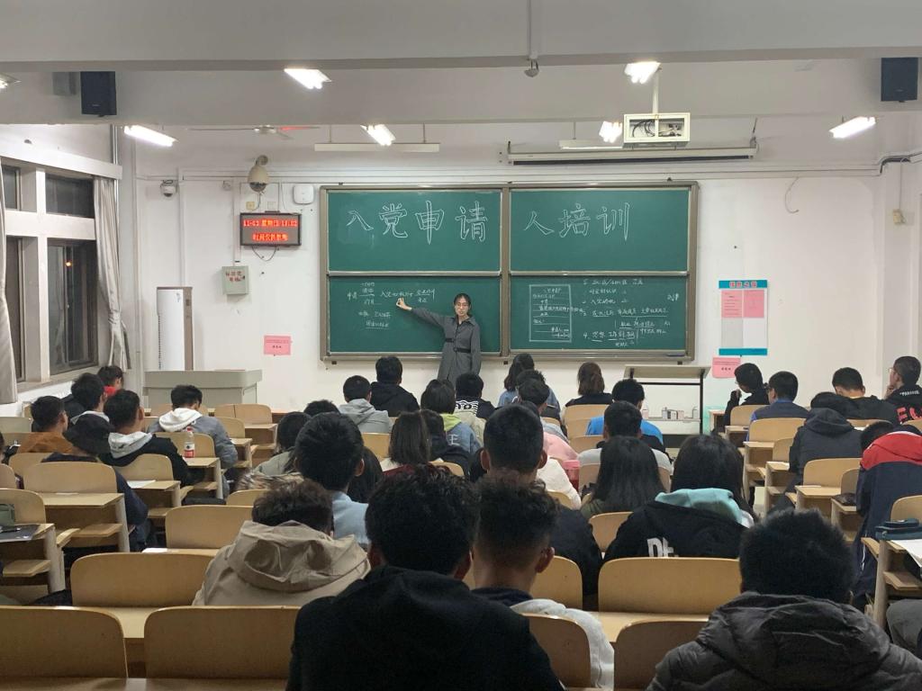 在培训中,秦思琦向同学们详细介绍了入党申请书的主要格式以及党员发展流程。首先,秦思琦较为清楚的点出了同学们的入党申请书中存在的错误格式及不足之处。她建议,入党申请书的撰写从五个方面进行。一是对党的认识,即把自己对中国共产党的认识写清楚;二是阐明入党动机,表明申请人入党的理由和初心;三是写明自身的成长经历、家庭成员及主要社会关系;四是从思想、学习、工作、作风等角度介绍自己,并写出自己的优缺点和将来的努力方向等;五是表明入党的决心,请求党组织在实践中的考验。