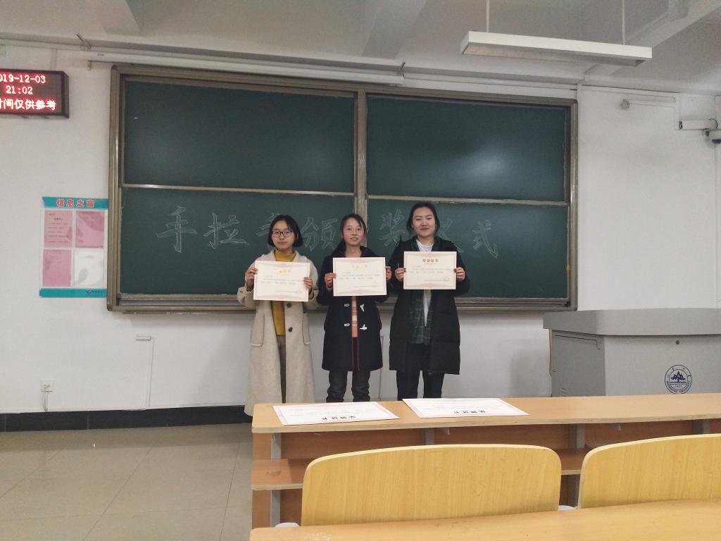 12月8日晚9时,外围买球的app十大平台实践志愿服务中心志愿服务部于兴隆山校区教学群楼举行第十届“手拉手”志愿服务活动颁奖仪式。土建学院志愿服务部部长张瑞康、殷建伟、王雨佳,办公室部长肖英担任颁奖嘉宾。