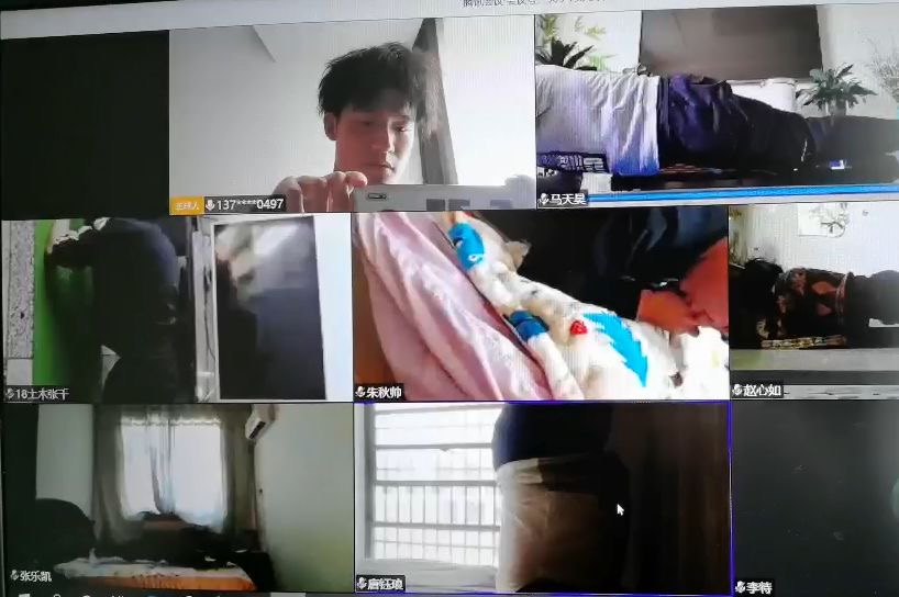 受疫情影响,本次比赛首次采用线上比赛的形式进行,为此同学们做了大量的测试和准备工作来保障比赛的顺利进行,最终选定了腾讯会议这一线上渠道进行比赛。比赛共有36名同学参加,分为四个小组同步进行。体育部宋泽航、邓翔、张晋、李东一担任裁判。
