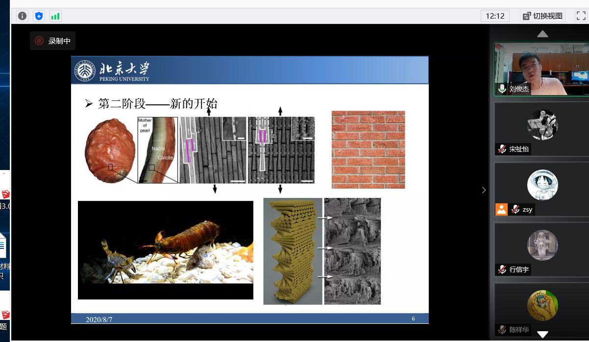 会议开始,阳生有介绍报告会报告人刘俊杰。刘俊杰获得北京大学理学博士学位,现于北京大学博士后流动站工作。主要研究仿生复合材料耐冲击,强韧化的机理与微观结构的优化设计。