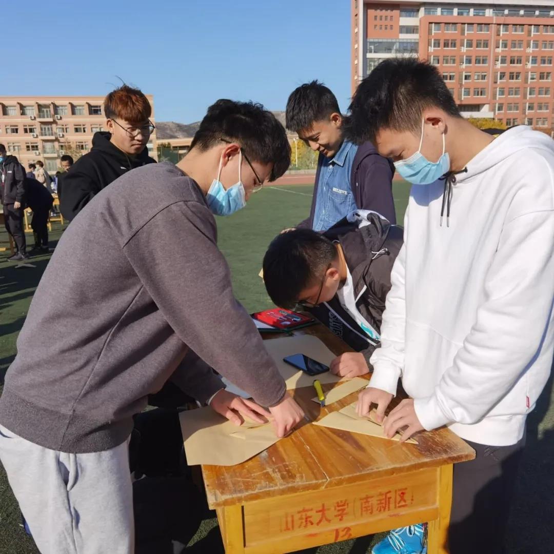 8号下午体育部整理好比赛会场后,各组开始领取纸张,制作自己组的飞机,队员们都绞尽脑汁,制作的飞机千姿百态,比赛场面越来越激烈。