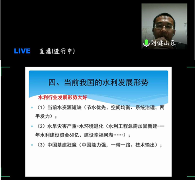 王栋教授将此次讲座与交流会看作与外围买球的app十大平台青年学子的云端恳谈。他首先分析了中国的水资源现状:我国水资源四大问题为水多、水少、水脏、水浑,主要表现在洪涝灾害、水资源短缺、泥沙问题、生态环境需水量逐步提高四个方面;中央一号文件聚焦水利、“海绵城市”建设推进、河湖长制贯彻落实、五大战略与“两山论”指导工作方向,在当今中国发展进程中水利事业具有重要地位。他带领同学们走进水世界,在广义和狭义上认识何为水资源,深度了解水循环,辨析水文学概念及其分类,学习了解水文的不确定性。在他看来如今水利专业青年学子正面临前所未有的历史发展机遇——国家重大需求与学科前沿挑战,水科学可衍生出水利部、应急管理部、生态环境部、自然资源部,水利专业青年学子生逢其时、大有可为。