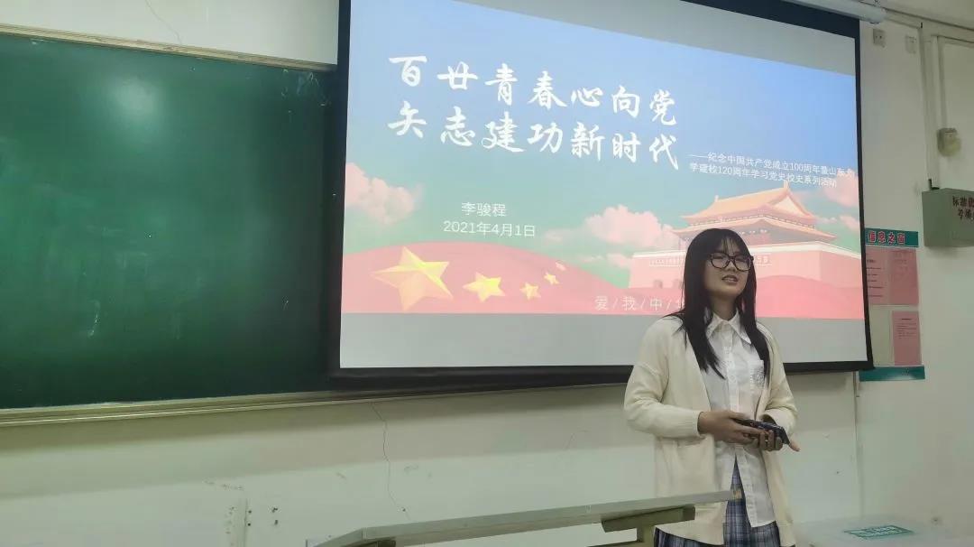4月1日晚,2020级土水海三班于教学楼1302开展主题为“百廿青春心向党 矢志建功新时代” 庆祝中国共产党成立100周年暨外围买球的app十大平台建校120周年学习党史校史主题团日活动,活动由团支书李骏程主持,土水海三班部分入党积极分子主讲,土水海三班全体团员参与了活动。
