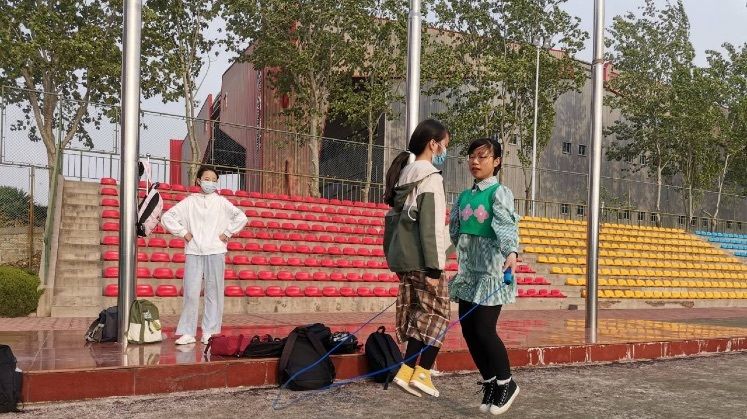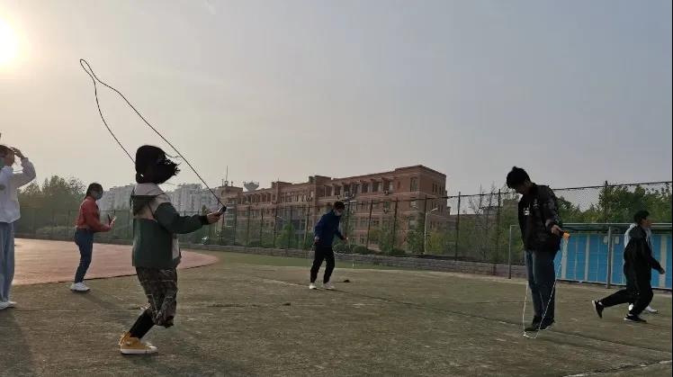 活动第二项为跳绳,同学们将小小的绳子玩出了多种花样,向前摇绳、向后摇绳、交叉摇绳等等,更有双人配合跳绳。同学们跳跃的身影与绳子甩动灵动的轨迹交织成绚丽的图画。