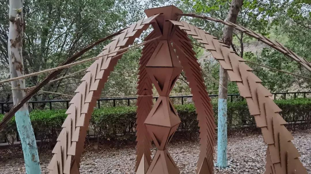 经过前三周的准备,八组同学在4月16日拿着瓦楞纸材料来到欣园门口,选好场地开始搭建。由于当日风力较强,同学们在搭建过程中需要应对山里的大风,在这样的恶劣天气下,同学们却笑语连连,兴致不减,并且积极想办法克服。有的组及时购买麻绳并临时改变方案,有的组利用环境中的树和石头加固搭建物的结构,可谓八仙过海、各显神通,展现出了灵活的应变能力和迎难直上的精神。搭建的过程缓慢而乐趣无穷,吸引了众多人流,经过的人们围观拍照,议论纷纷,欣园西门一时热闹非凡。